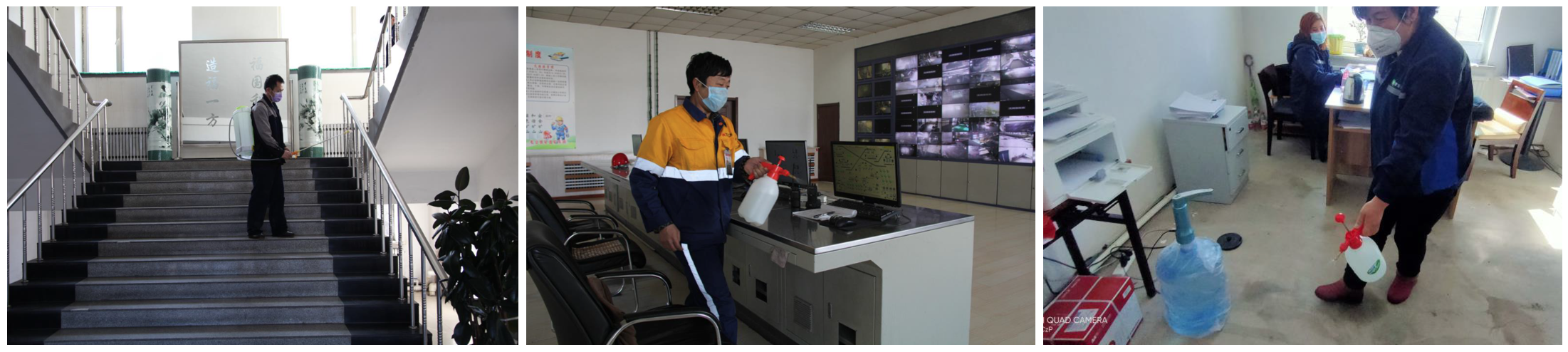 选矿车间中控室员工一直坚守在岗位上每天为监控室消毒、透风,为打造一个安全的工作环境不放过任何一个死角。