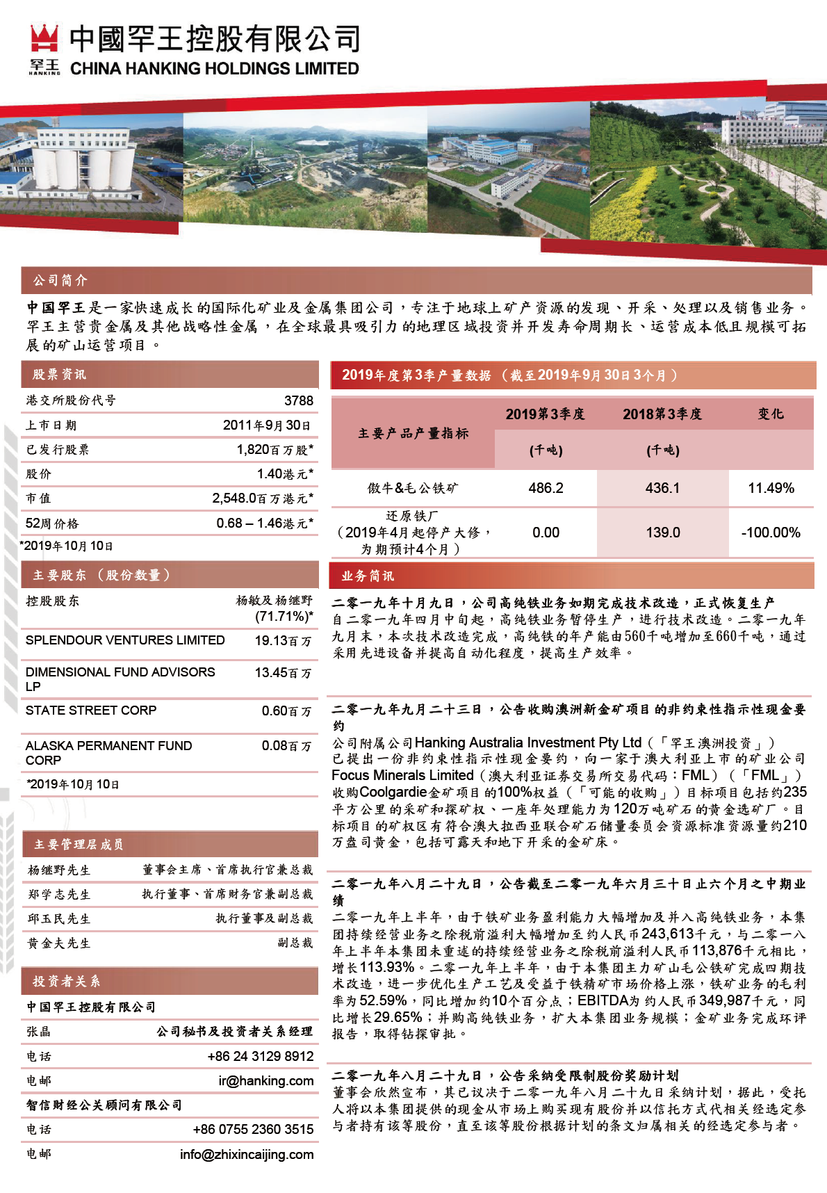 2019年度第3季季度数据( 截至2019年9月30日3个月)