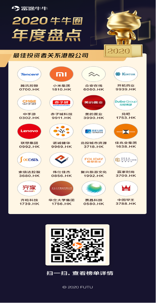 此次中国罕王获富途年度最佳投资者关系公司奖,彰显了投资者对2020年公司业务发展、企业管治以及投资者关系工作的认可,肯定了公司为加强与资本市场的沟通所做出的努力和成绩,也再次体现了公司在资本市场的品牌影响力和美誉度。展望未来,中国罕王将继续深耕行业,保持稳健经营、开拓业务发展、充分发挥自身优势,回报广大投资者对公司的信任。