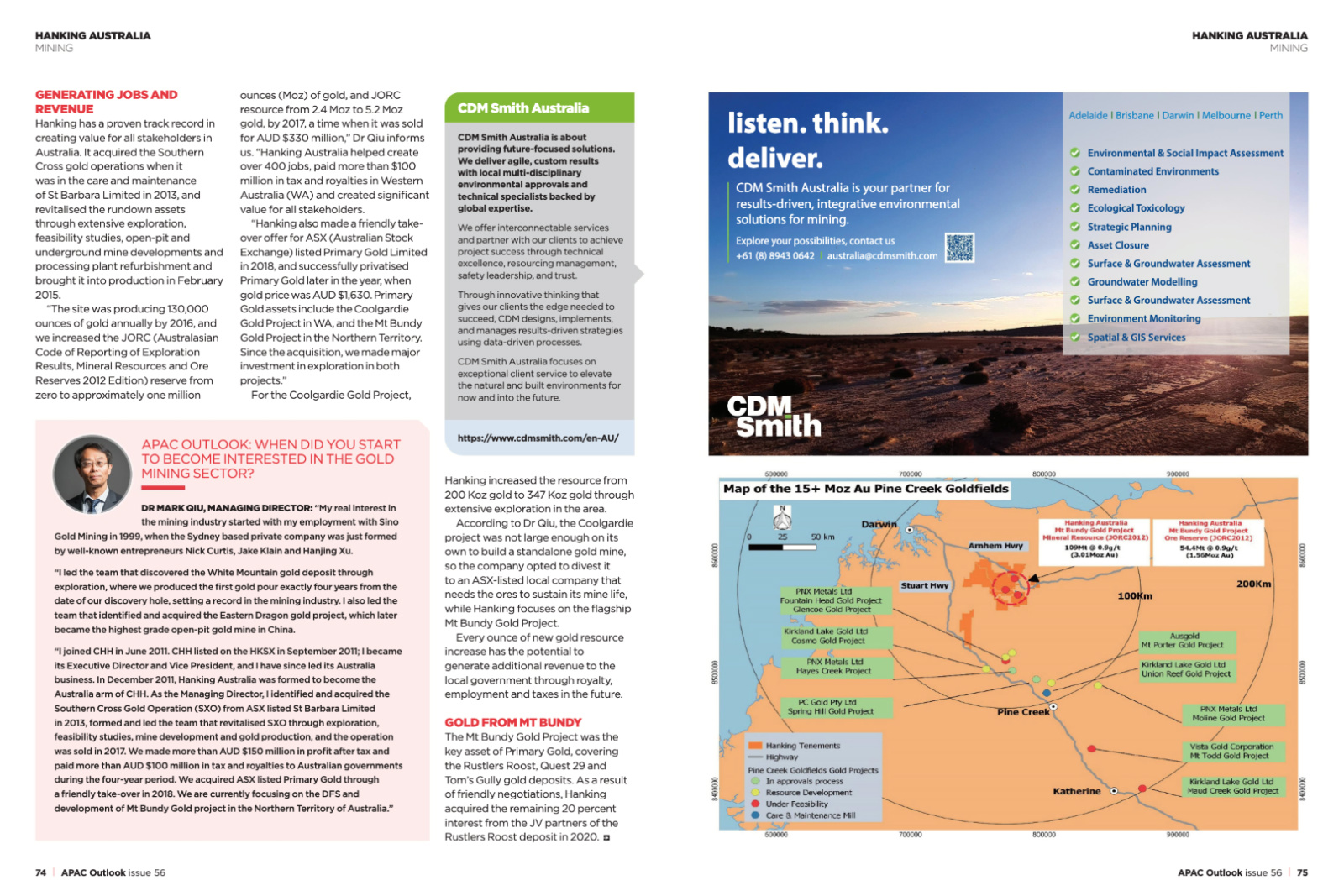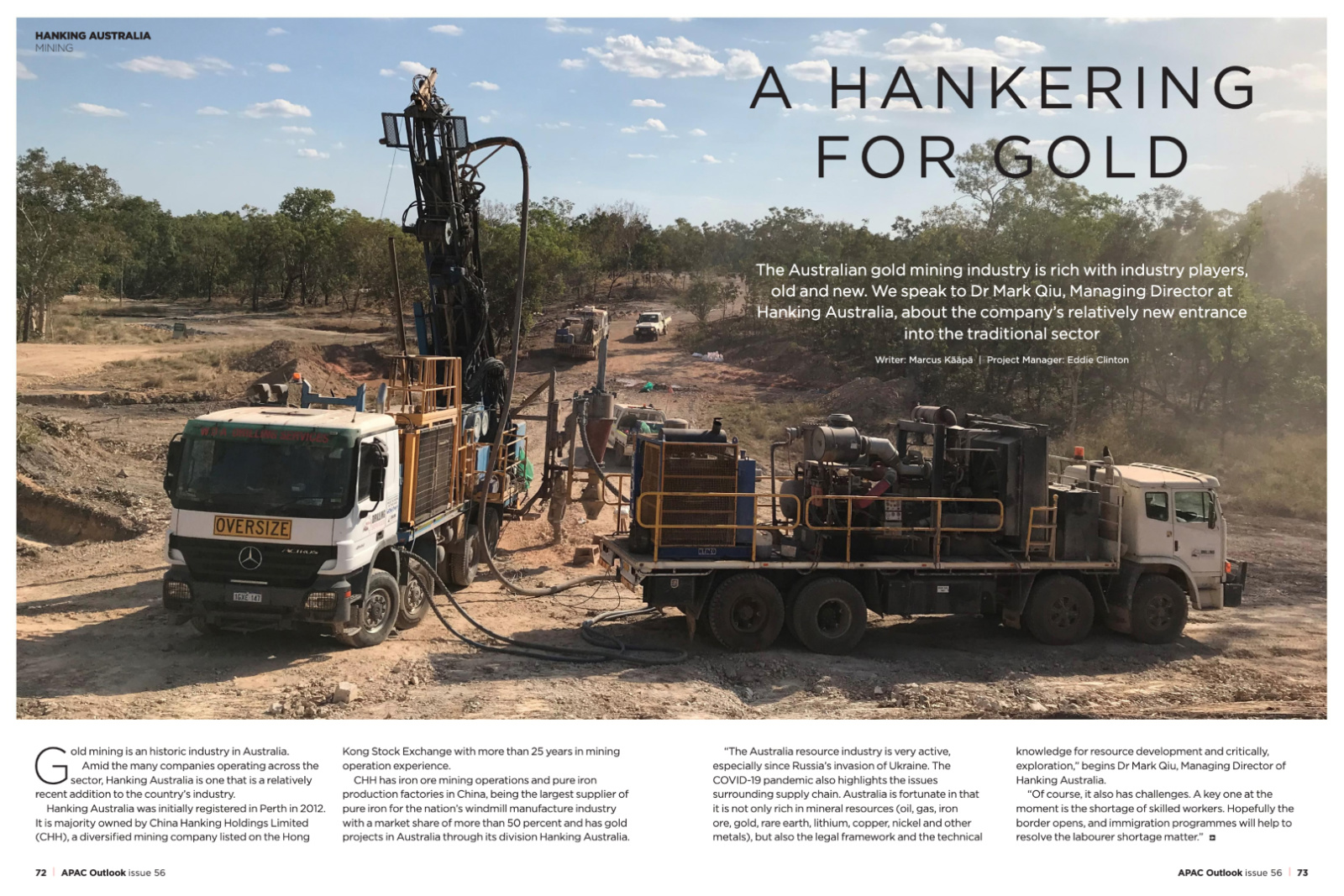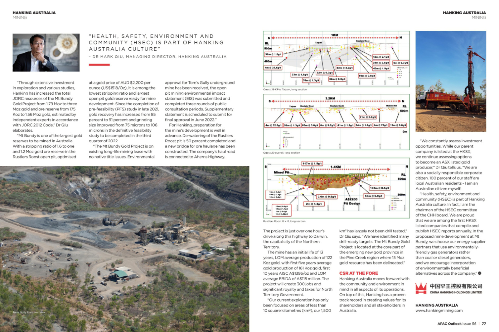 [APAC Outlook issue 56] The Australian gold mining industry is rich with industry players, old and new. We speak to Dr Mark Qiu, Managing Director at Hanking Australia, about the company's relatively new entrance into the traditional sector.