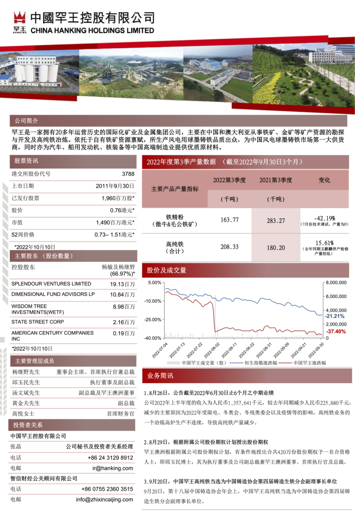 2022年度第3季产量数据 (截至2022年9月30日3个月)